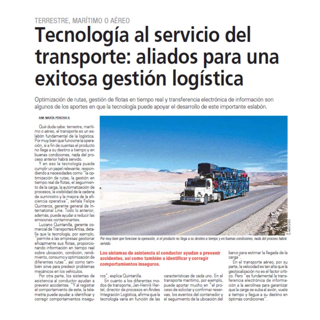 Queremos compartir con ustedes esta nota publicada hoy por El Mercurio, en la que se refiere al uso de la tecnología como un gran aliado para la gestión logística.